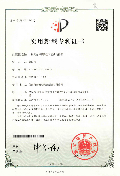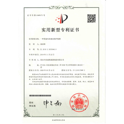 實用新型專利證書一種變速風機驅(qū)動保護裝置