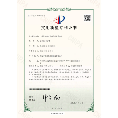 實用新型證書一種檢測電網(wǎng)過零點的簡易電路
