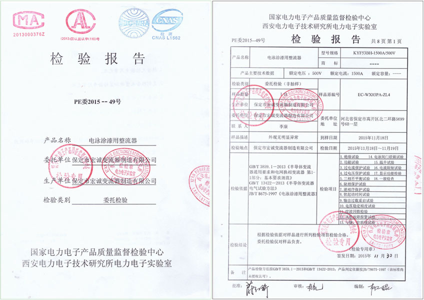 通過第三方國家電力電子技術中心對設備的全方面檢測,滿足JB/T8675所有技術性能要求。