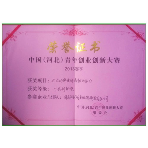 2013年中國(河北)青年創(chuàng)業(yè)創(chuàng)新大賽中榮獲十佳創(chuàng)新獎獎項。