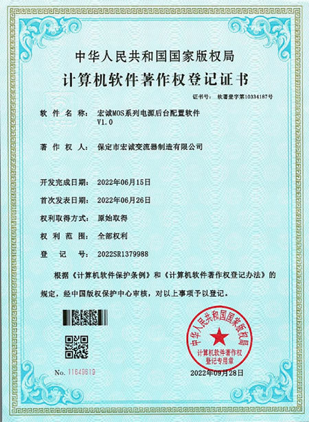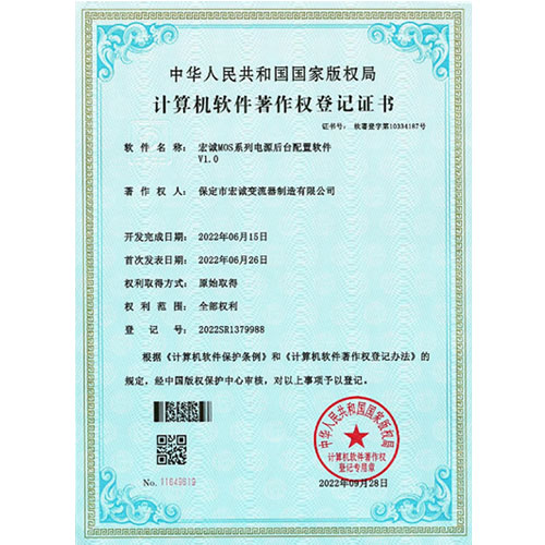 計算機(jī)軟件注冊權(quán)登記證書——整流器產(chǎn)品生產(chǎn)加工智能管理系統(tǒng)V1.0